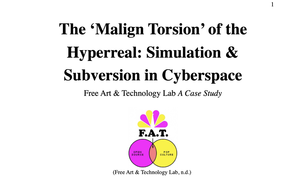 The case study is titled “The ‘Malign Torsion’ of the Hyperreal: Simulation & Subversion in Cyberspace“.