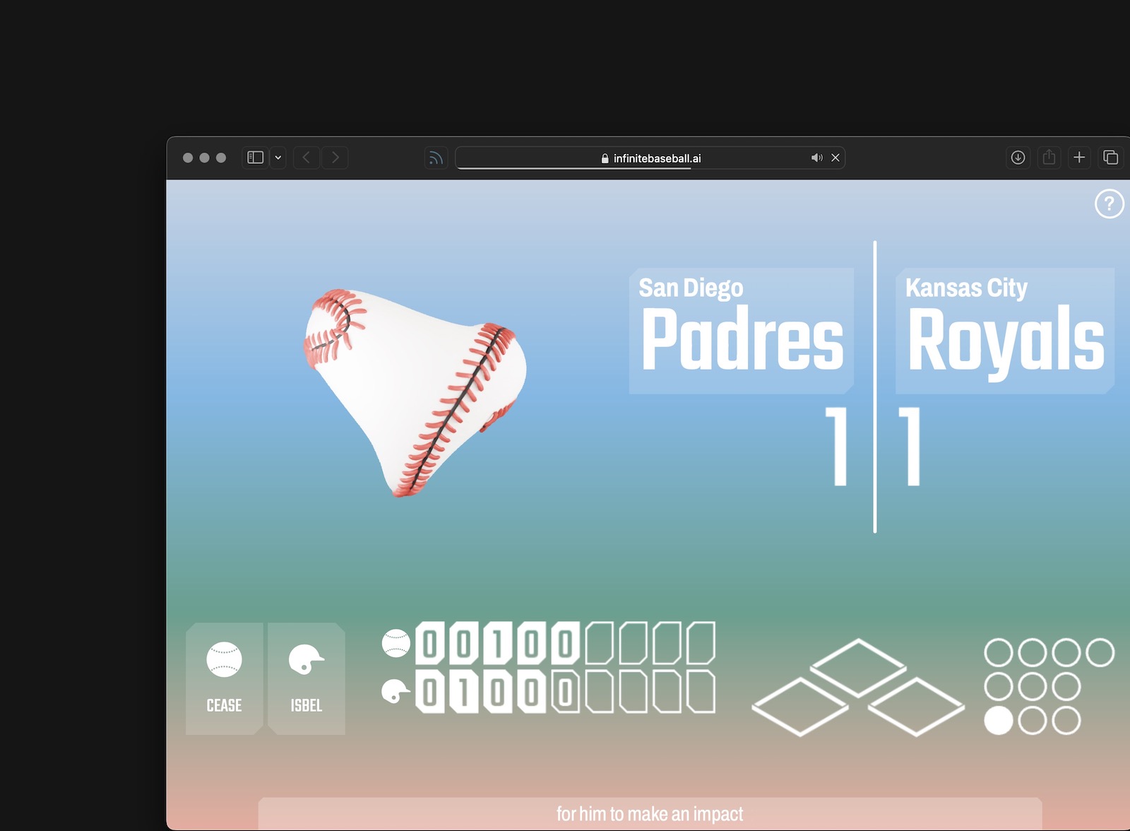 Our Fellow F.A.T. Lab degenerate Dan Moore was honored by the AI Creative Future Awards this past December for his generative AI work The Great American Pastime. The piece reimagines baseball, one of America’s most deeply ingrained cultural rituals, as an infinite, machine generated radio broadcast. Games unfold pitch by pitch through synthetic play by play commentary, drawing from decades of statistics, narrative tropes, and the familiar cadence of sports radio.